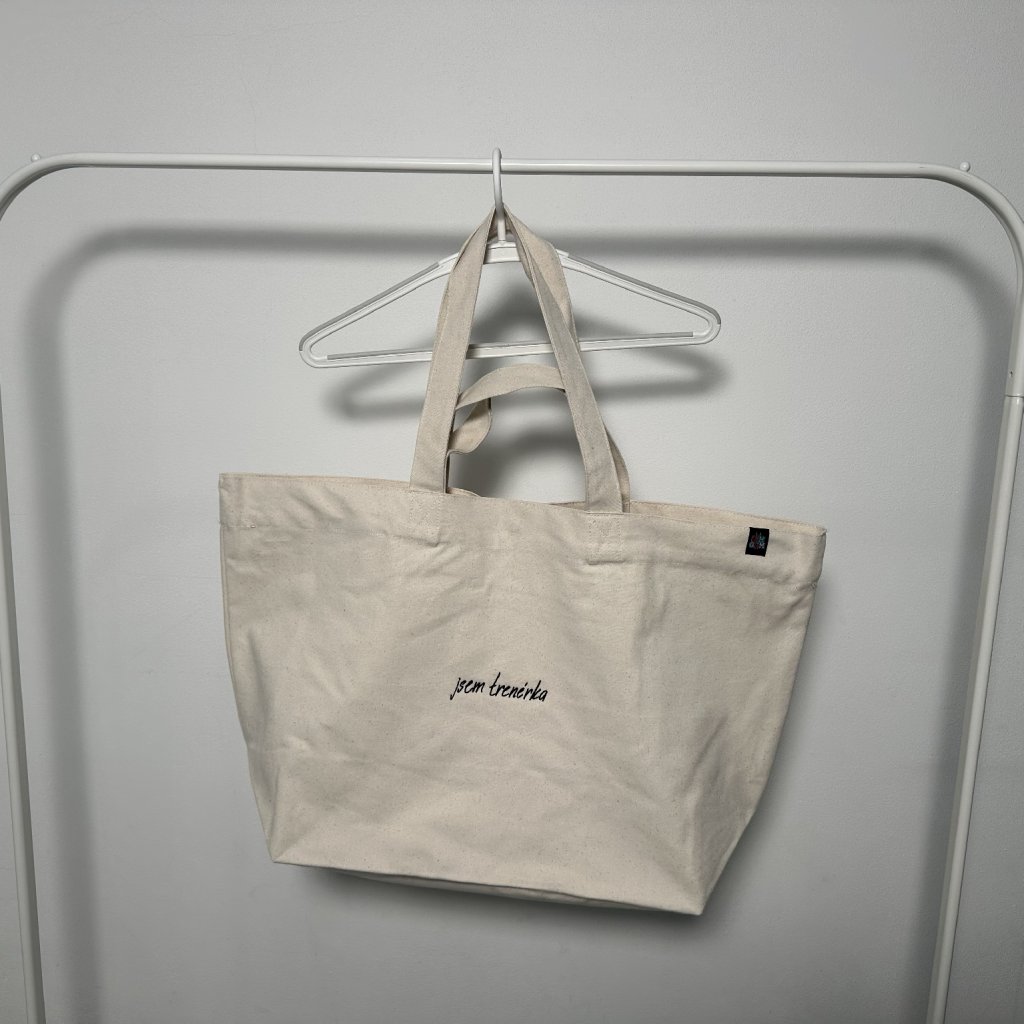 Stylový a pohodlný plátěný shopping bag prémiové značky Stanley & Stella, zdobený nápisem „JSEM TRENÉRKA“. Dokonalá volba pro každou trenérku, která chce vyjádřit svou lásku a hrdost ke gymnastice. #jsemtrenerka #milujugymnastiku